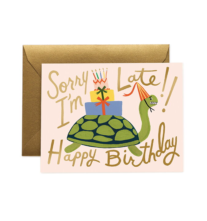 / Dubbelkort, ”Rifle & Paper, Turtle Belated Birthday”.