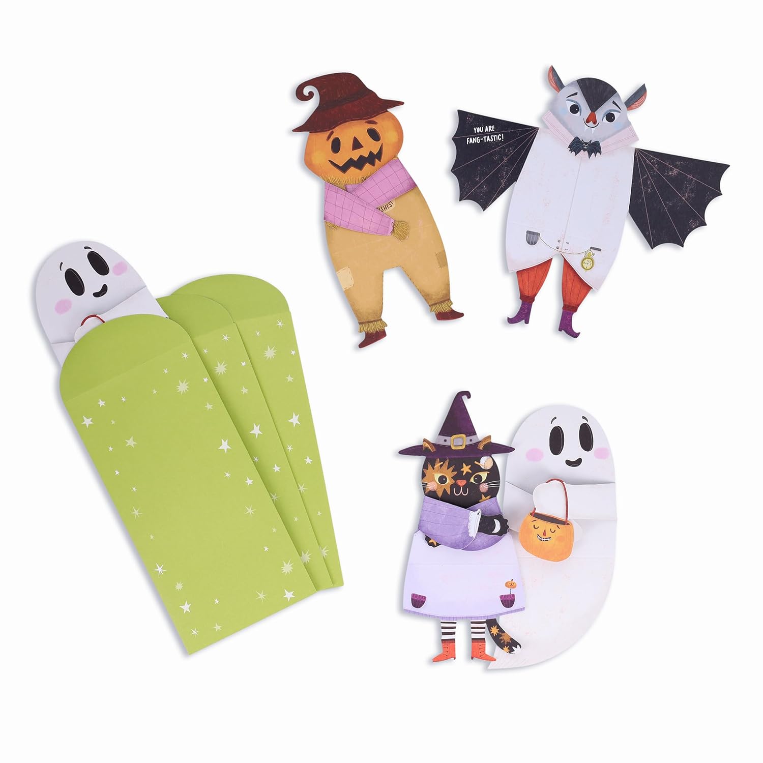 Figurerna kan också vikas för att stå uppställda för att hålla ditt hem eller kontor charmigt hemsökt när som helst på året.