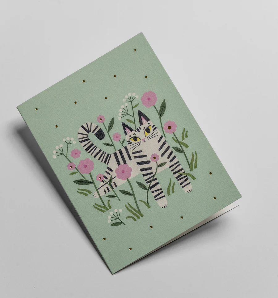 Mini dubbelkort, Essi Kimpimäki, ”Pink Meadow Cat”, Lagom Design