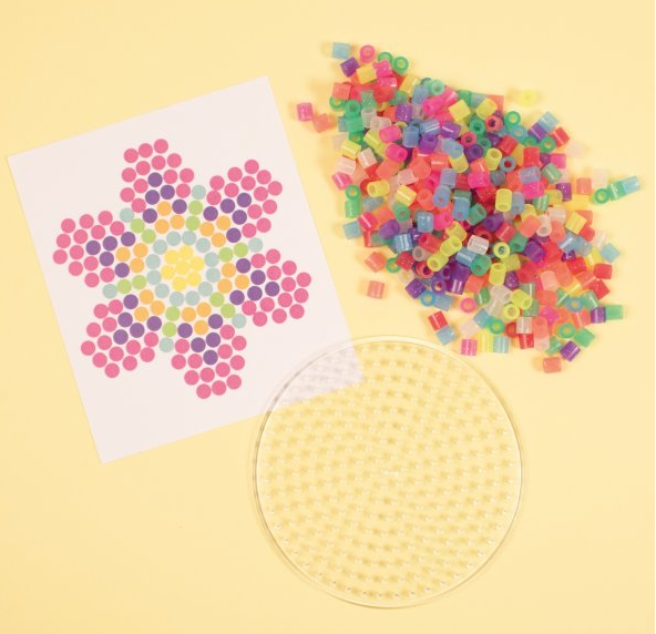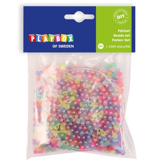 Rörpärlor i vacker pastellmix. I förpackningen finns mönster att följa och en pärlplatta i form av en cirkel. Rörpärlorna kan även träs på tråd eller användas till dekoration av olika slag.